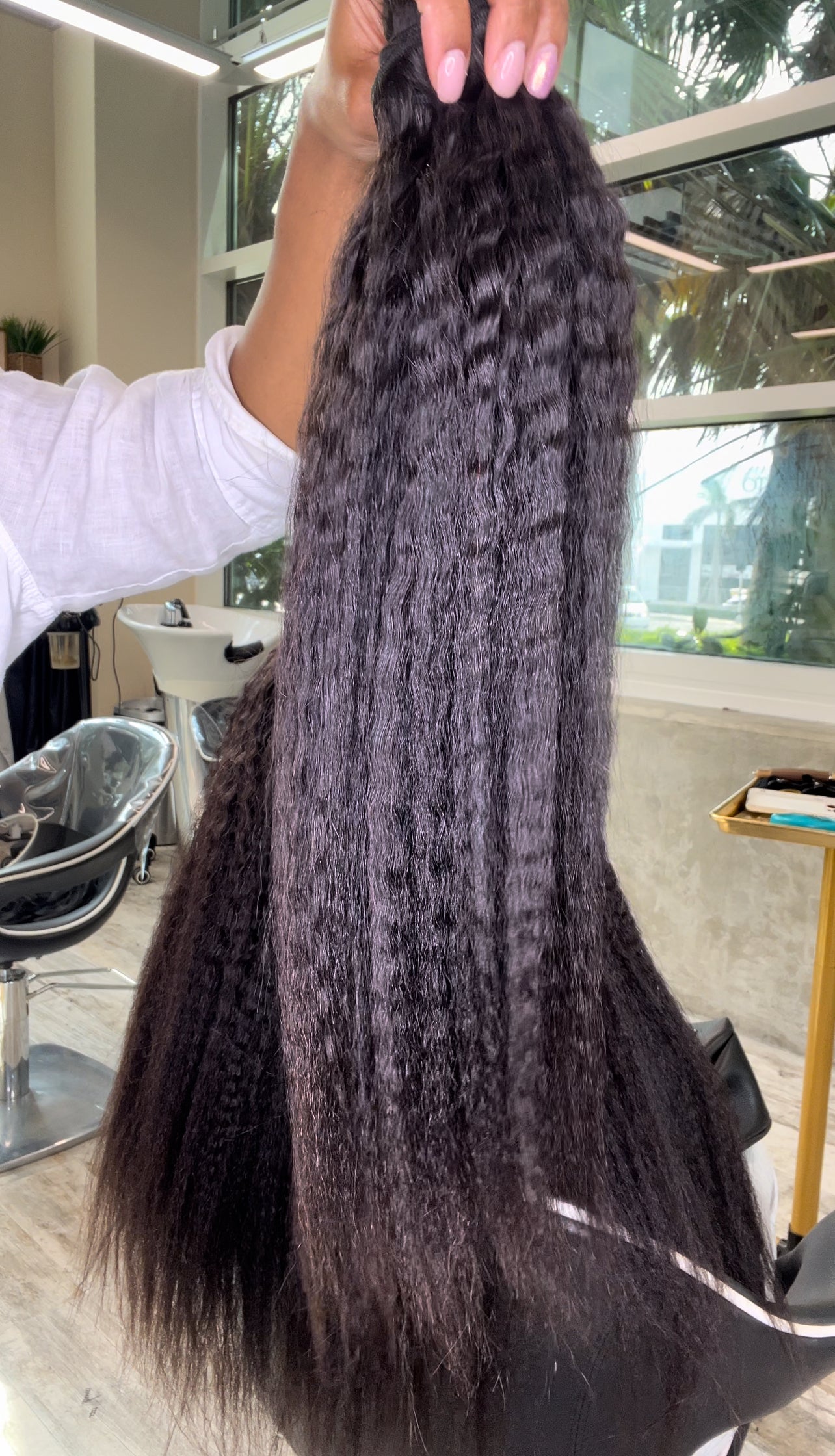 The PERFECT match for naturally textured hair types. This Kinky-Straight texture perfectly resembles African-American relaxed hair, and blown-out/straightened natural hair. This hair is naturally full. When air-dried has a natural, slight textured wave.